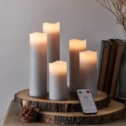 Lot De 3 Bougies Piliers TruGlow® Grises à LED Télécommandées