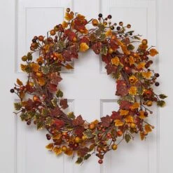 Lot De Couronne Et Guirlande Automne-Hiver En Marron Et Vert Vieilli