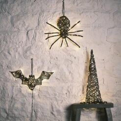 Lot De Décoration D’Halloween En Rotin : Araignée, Chapeau De Sorcière, Et Chauve-Souris