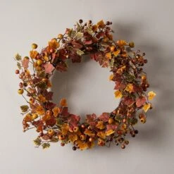 Couronne Automnale Pré-éclairée De 50 Cm à Baies Et Pommes De Pin
