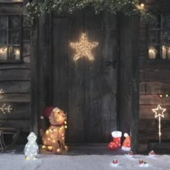 Chien Lumineux Avec Bois De Cerf à Guirlande Multicolore, Figurine De Noël De 80 Cm