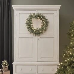 Couronne De Noël Pré-éclairée D’Extérieur De 60 Cm à Effet Givré